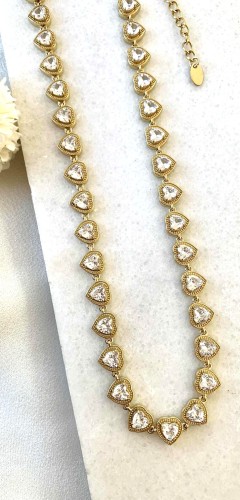 Ατσάλινη αλυσίδα με κρεμαστό στοιχείο σε χρυσό χρώμα. Το στοιχείο είναι διπλής όψης με διαφορετικό σχέδιο στις δύο πλευρές. Ένα κομψό και διακριτικό κ..