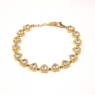Χρυσό βραχιόλι ριβιέρα από ανοξείδωτο ατσάλι με στρόγγυλα ζιργκόν