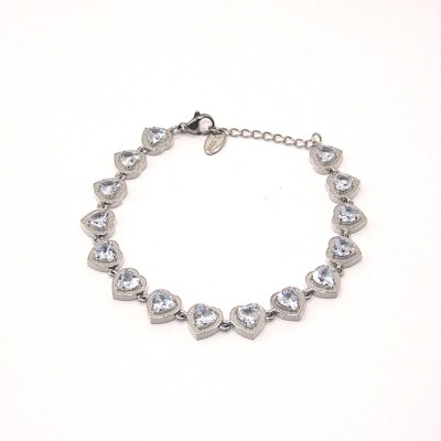 Αναδείξτε την εμφάνισή σας με αυτό το βραχιόλι ριβιέρα από ανοξείδωτο ατσάλι. Το βραχιόλι σε χρυσό χρώμα αποτελείται από λαμπερές λευκές πέτρες προσδίδοντας εκλεπτυσμένη λάμψη, ενώ η κατασκευ΄ή του το καθιστά υποαλλεργικό και ανθεκτικό στη χρήση. Φορέστε το σε μια βραδινή εμφάνιση σε συνδυασμό με το κολιέ ριβιέρα και τραβήξτε όλα τα βλέμματα πάνω σας.